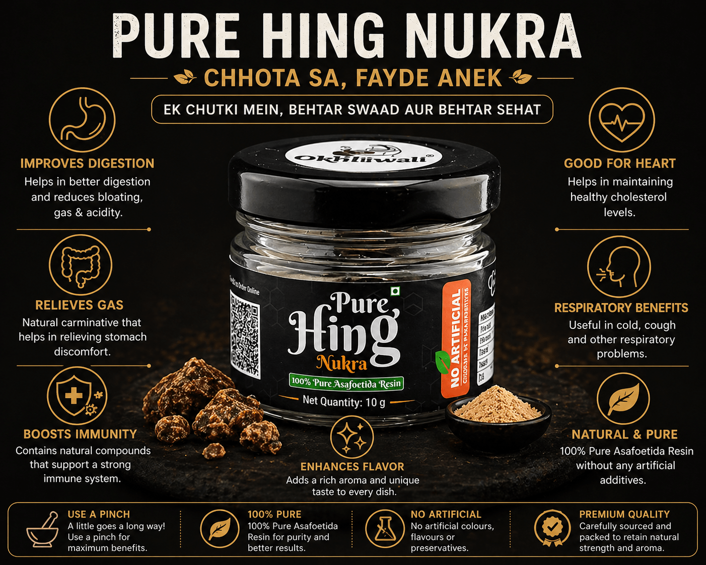This Nukra hing is strong, so use carefully. Perfect for authentic Indian kitchen taste.